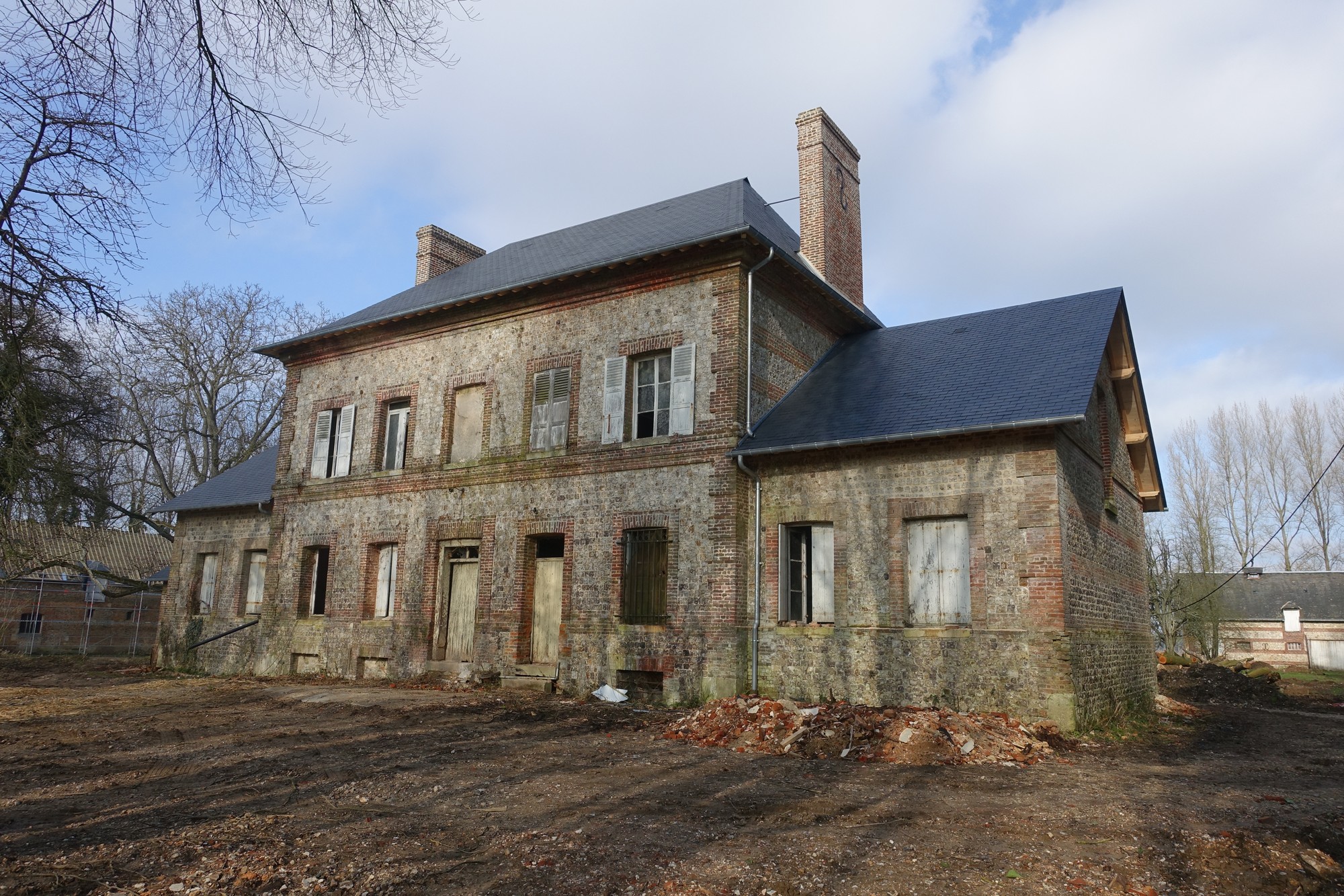 Dissimulée au cœur des ronces, son toit entièrement effondré, cette belle demeure semblait condamnée à l’oubli. Sauvée in extremis de l’abandon, elle a retrouvé vie grâce à une première tranche de travaux minutieux : les gravats qui encombraient le rez-de-chaussée ont été évacués, les structures reprises et une nouvelle toiture élevée, redonnant à la maison sa silhouette et sa présence dans le paysage environnant.