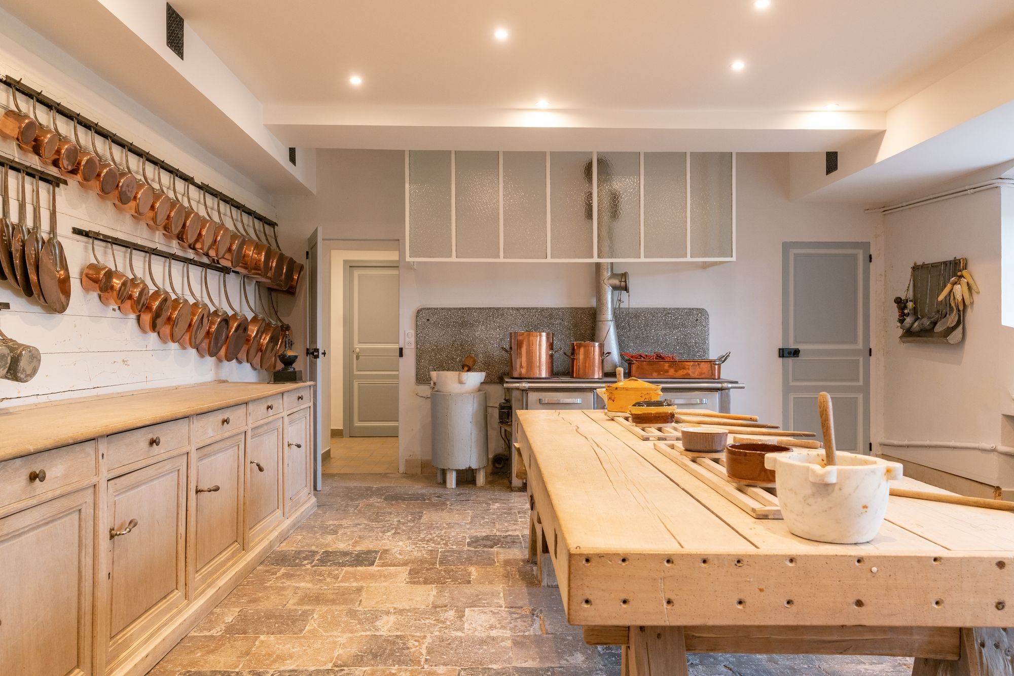 Notre intervention a consisté à rendre ce château à nouveau habitable en lui apportant le confort nécessaire. L’ensemble des salles de bains a été repensé, les volumes altérés par le XIXᵉ siècle ont été restitués, et une cuisine a été créée. Les réseaux électriques et de chauffage ont également été entièrement repensés. À l’issue de ces travaux de grande envergure, l’ensemble des décors a été restauré avec les conseils d’un ami décorateur de la famille.