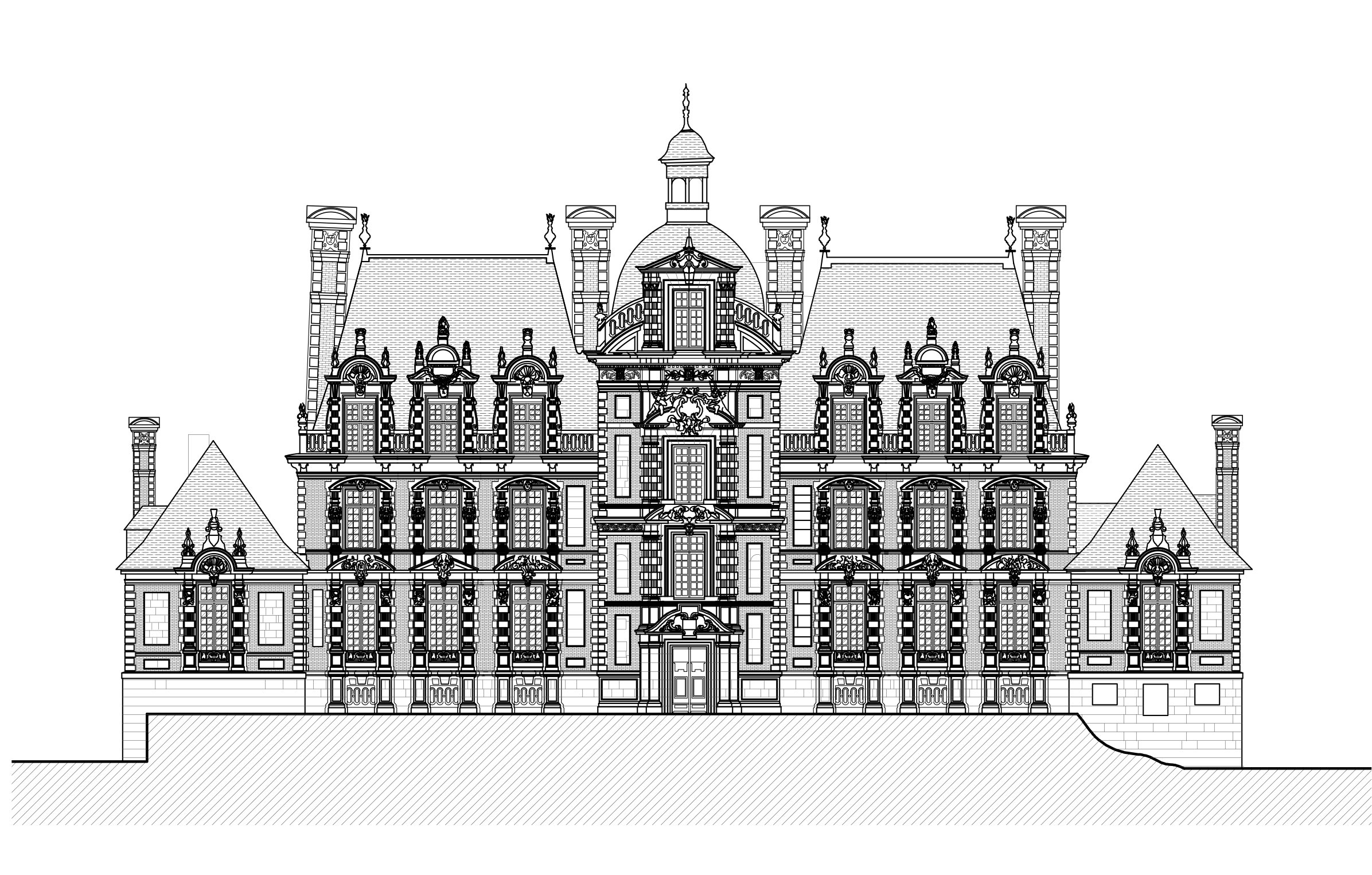 La mission de maîtrise d’œuvre s’inscrit dans la continuité des nombreuses interventions qui ont marqué l’histoire constructive du château de Beaumesnil depuis le XVIIe siècle. Face aux pathologies structurelles révélées par le diagnostic architectural — infiltrations récurrentes, altérations des bois, fragilisation des lucarnes, des corniches et des charpentes — l’opération a consisté à restaurer en profondeur les planchers et charpentes, éléments essentiels de la stabilité et de la préservation de l’édifice.